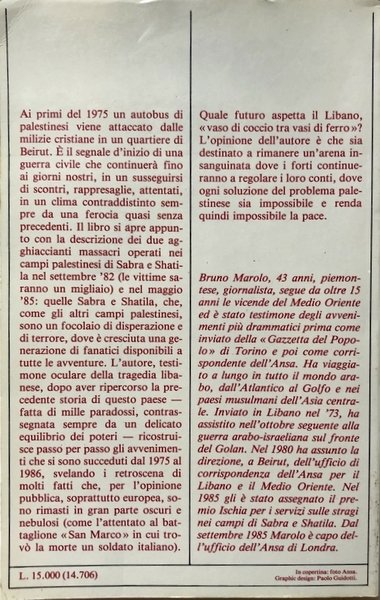 - Storia contemporanea, Reportage, Medio Oriente, Libano, Terrorismo, Geopolitica, Israele, Conflitti, Guerre, Anni Ottanta, Libri Vintage, Sabra e Chatila, Politica estera, Guerra civile libanese