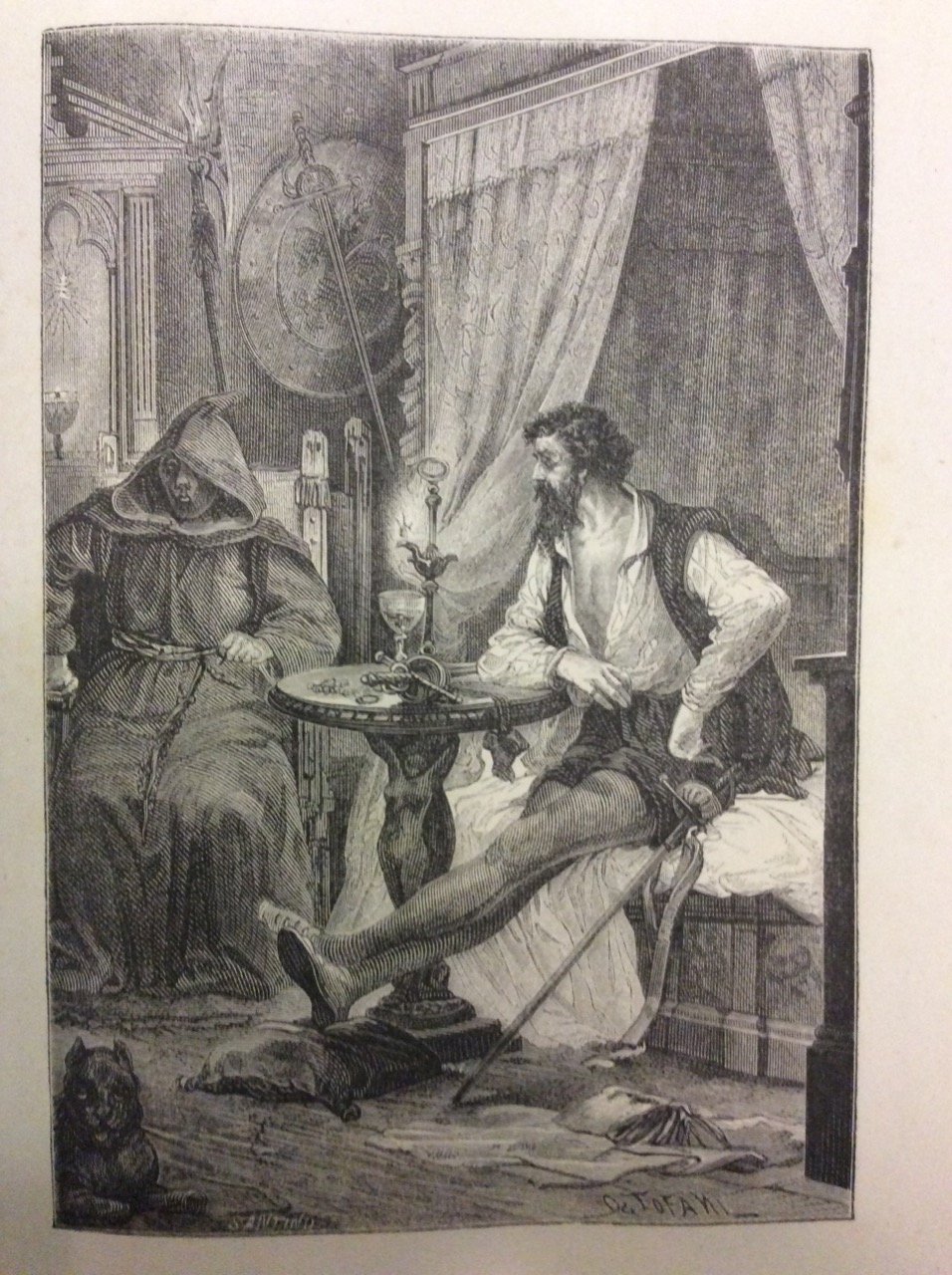 In-8 p. (mm. 230x157), mz. pelle con ang., dorso a cordoni (lievi abrasioni) con titolo oro, pp. 848 (da p. 839 catalogo edit.), testo entro sottile cornice decorata, molto ben illustrato nel testo da 40 grandi iniziali figurate a vignette, all'inizio di ogni capitolo, e da numerosiss. tavole in bianco e nero fuori testo disegnate da Tofani ed inc. su legno da vari artisti. Romanzo storico di Massimo D'Azeglio (1798-1866), pubblicato nel 1841 e dedicato a Tommaso Grossi. Lo scopo del romanzo è di gettare tutta la luce sui Piagnoni e tutta la tenebra sui Palleschi. E la vicenda fantastica ben si intona alla storia con una certa felice emulazione dei Promessi Sposi'. Ma sono estremamente sminuzzati i particolari.. Vivissima è la figura di Fanfulla da Lodi, che, per metà sacerdote e per metà guerriero, incarna l'idealità guelfa di patriottismo e di fede. Così Diz. Opere Bompiani,V, p.56.Lievi tracce d'uso, qualche alone interc. nel testo, ma certamente un buon esemplare.