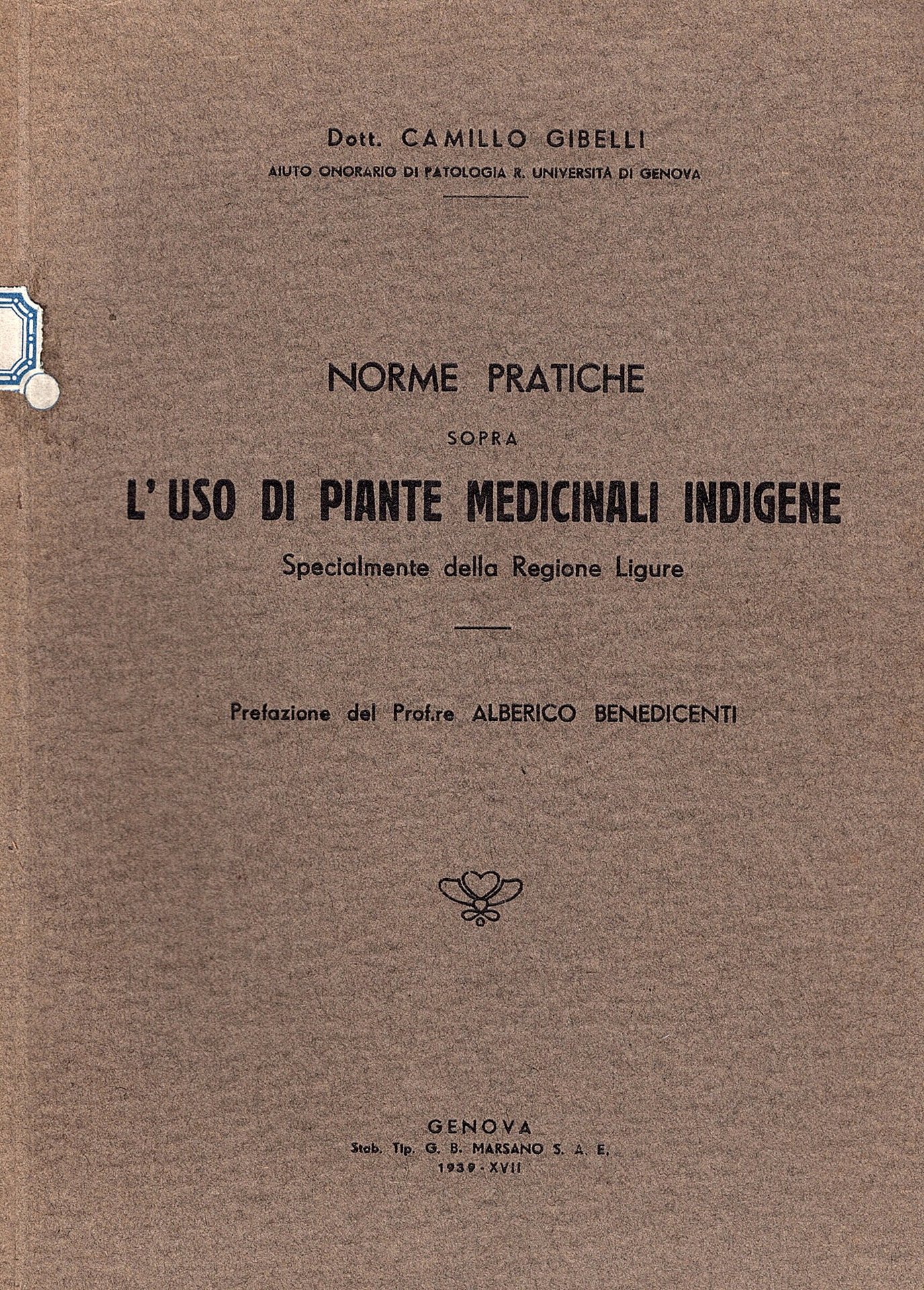 Norme pratiche sopra l'uso di piante medicinali indigene. Specialmente della Regione Ligure. Prefazione del Prof. re Alberico Benedicenti