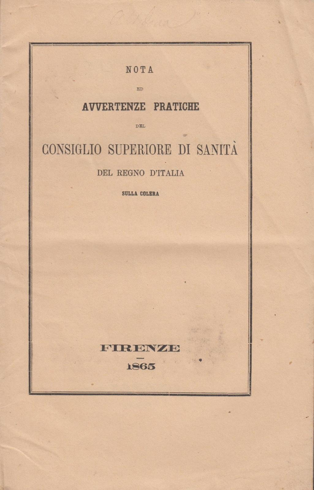 Nota ed avvertenze pratiche del Consiglio Superiore di Sanit‡ del Regno d'Italia sul colera Firenze 1865