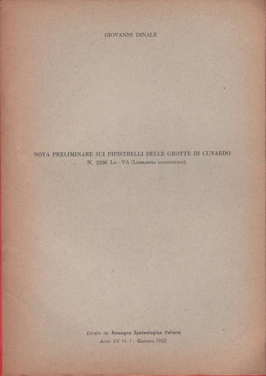 Nota preliminare su pippistrelli delle grotte di Cunardo. n. 2206 VA