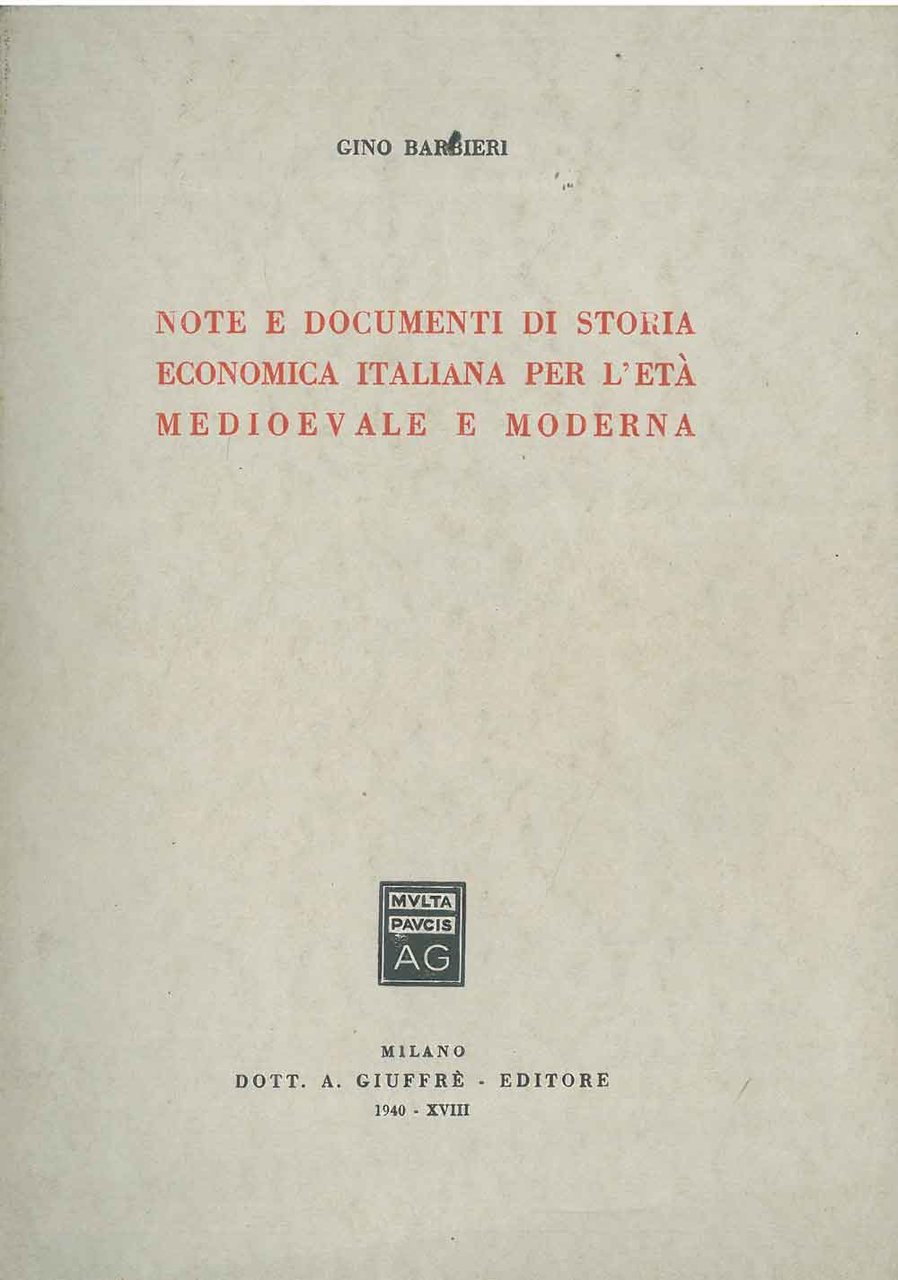 Note e documenti di storia economica italiana per l'età medioevale e moderna