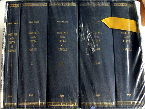 NOTIZIE DEL BELLO DELL’ANTICO E DEL CURIOSO DELLA CITTÀ DI NAPOLI. Divise dall'autore in dieci giornate per guida e comodo de' viaggiatori con aggiunzioni de' più notabili miglioramenti posteriori fino al presente estratti dalla storia de' monumenti e dalle memorie di eruditi scrittori napoletani per cura del Cav. Giovanni Battista Chiarini | Libros antiguos y modernos | Carlo Celano
