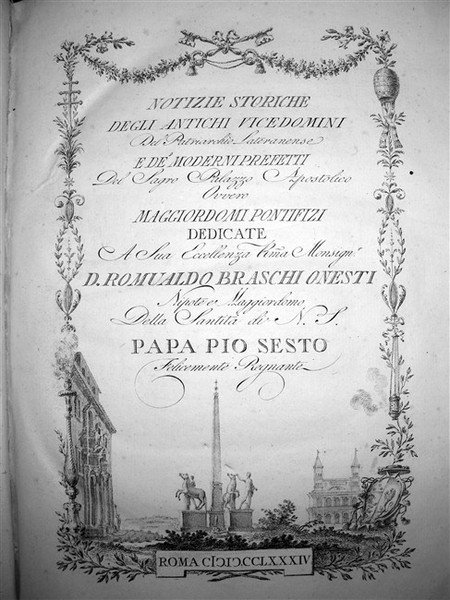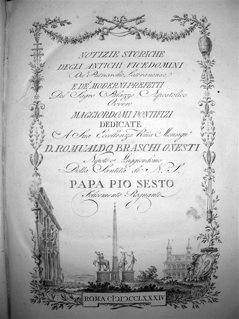 NOTIZIE STORICHE DEGLI ANTICHI VICEDOMINI del Patriarchio Lateranense e de' moderni prefetti del Sagro Palazzo Apostolico ovvero Maggiordomi Pontifizi.