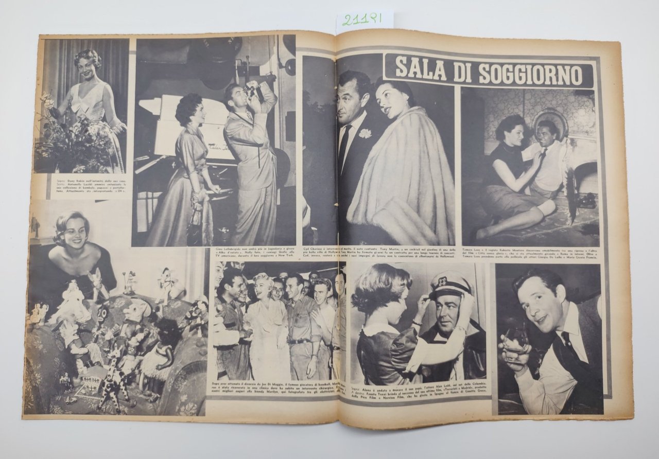 Settimanale di racconti cinematografici, legatura morbida editoriale in condizioni accettabili con bruniture piccoli strappi ai margini, dorso in precarie condizioni con rotture e mancanze, tagli leggermente bruniti, numero pagine 31 dimensioni cm 35,5 * 28