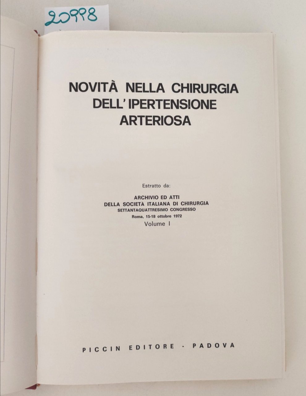 Novità nella chirurgia dell'ipertensione arteriosa estratto 1972 Piccinin editore