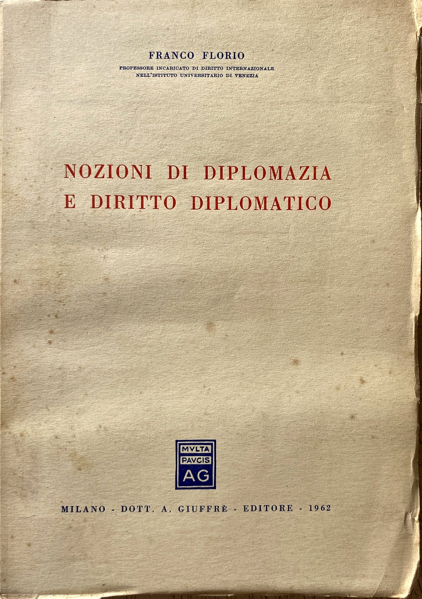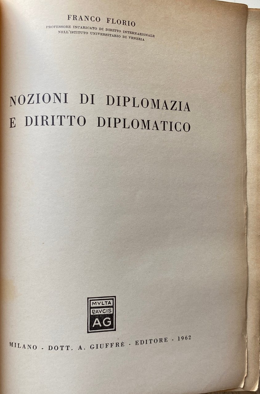 NOZIONI DI DIPLOMAZIA E DI DIRITTO DIPLOMATICO | Libros antiguos y modernos | Franco Florio, Franco Florio