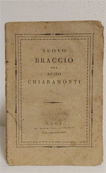 in-8, pp. 76, bross. edit. con cornice xilogr. ai piatti. Picc. dif. al d. Raro catalogo con la descrizione delle opere conservate al Museo fondato nel 1806 all'interno delle collezioni Vaticane ed inaugurato nel 1822. [173]