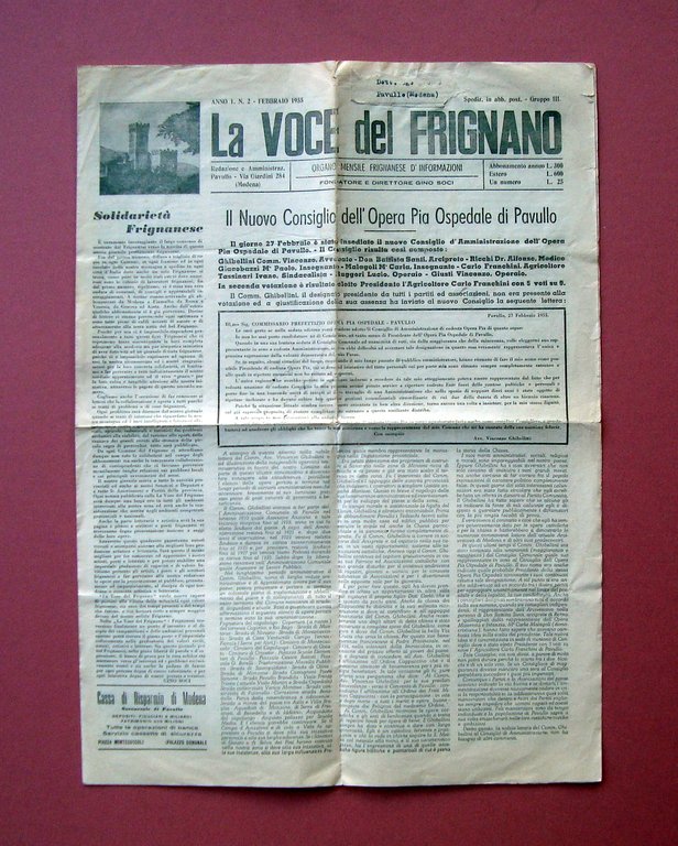 Nuovo Consiglio Opera Pia Ospedale Pavullo La Voce del Frignano 1955 Anno 1 N.2