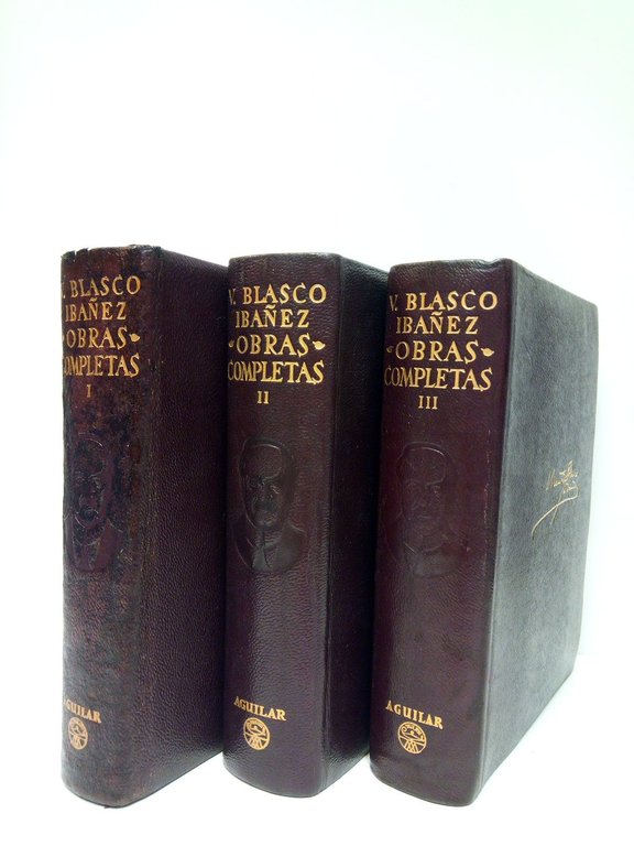 2ª Ed. en esta colección.- Madrid: Aguilar, 1949.- 3 VOLS. con 1663 p.; 1796 p.; 1813 p.: Los tomo 1º y 3º con sendos retratos del autor ante la portada y e tomo 2º con unas notas del autor facsímiles ante la postada; 8º (18 x 14,5 cm); Impresión a dos columnas; Papel biblia; Cinta guía de lectura; Plena Piel Ed. cortes pintados con motivos florales.- (Col. Obras Eternas. Nos. 37, 38 y 39).- Mucho más tarde en los 1977-78 se añadieron 3 tomos más de obras que habían quedado inéditas.* El tomo 1º tiene el lomo ligeramente desteñido, con la cejilla de la cabeza ligeramente rozada. Ha sido restaurado, quedando muy aceptable. LITERATURA Y FILOSOFÍA ESPAÑOLAS DE LOS SIGLOS XIX-XXI Y SU HISTORIA EN GENERAL
