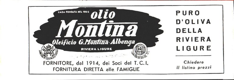 Oleificio G. Montina. Albenga (SV) - Pubblicità 1959