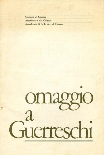 [20] p. : ill. ; 30 x 20 cm. Catalgo della mostra dedicata al pittore e incisore, Giuseppe Guerreschi (1929-1985), organizzata dal Come e dall'Accademia di Belle arti di Carrara dal 24 luglio al 13 agosto 1986. Introduzione di Floriano Bodini. Brossura editoriale (spillata), in cartoncino flessibile con alette, interno con numerose illustrazioni in b/n su carta patinata lucida. Codice libreria 2927.