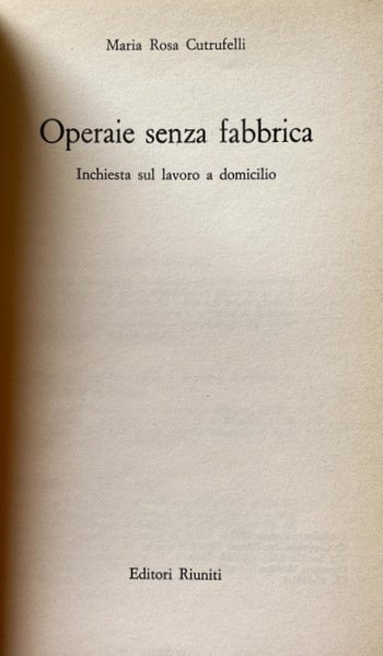 OPERAIE SENZA FABBRICA. INCHIESTA SUL LAVORO A DOMICILIO | Libros antiguos y modernos | Maria Rosa Cutrufelli
