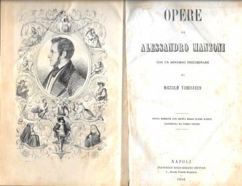 in 8°, pp. 810, leg. moderna m/tela blu con angoli e piatti marmor. Nuova edizione con giunta degli ultimi scritti, illustrata da 11 inc. f.t. in acciaio di Richter, tra cui il ritratto del Manzoni entro cornice figurata all'antiporta.; testo su due colonne; lievi fior. sparse, rinforzi alle sguardie. Discreto esemplare. 197/34