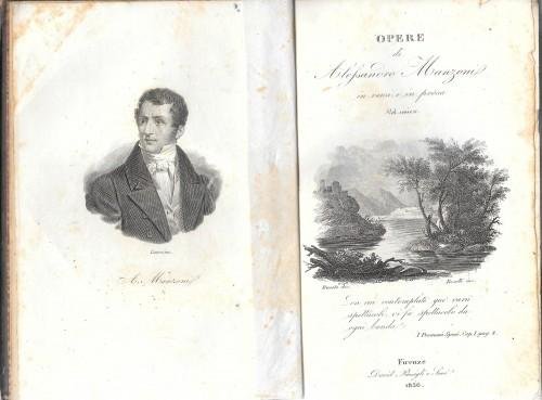 Opere di Alessandro Manzoni in verso e in prosa. Volume unico adorno di nove incisioni a vignetta.