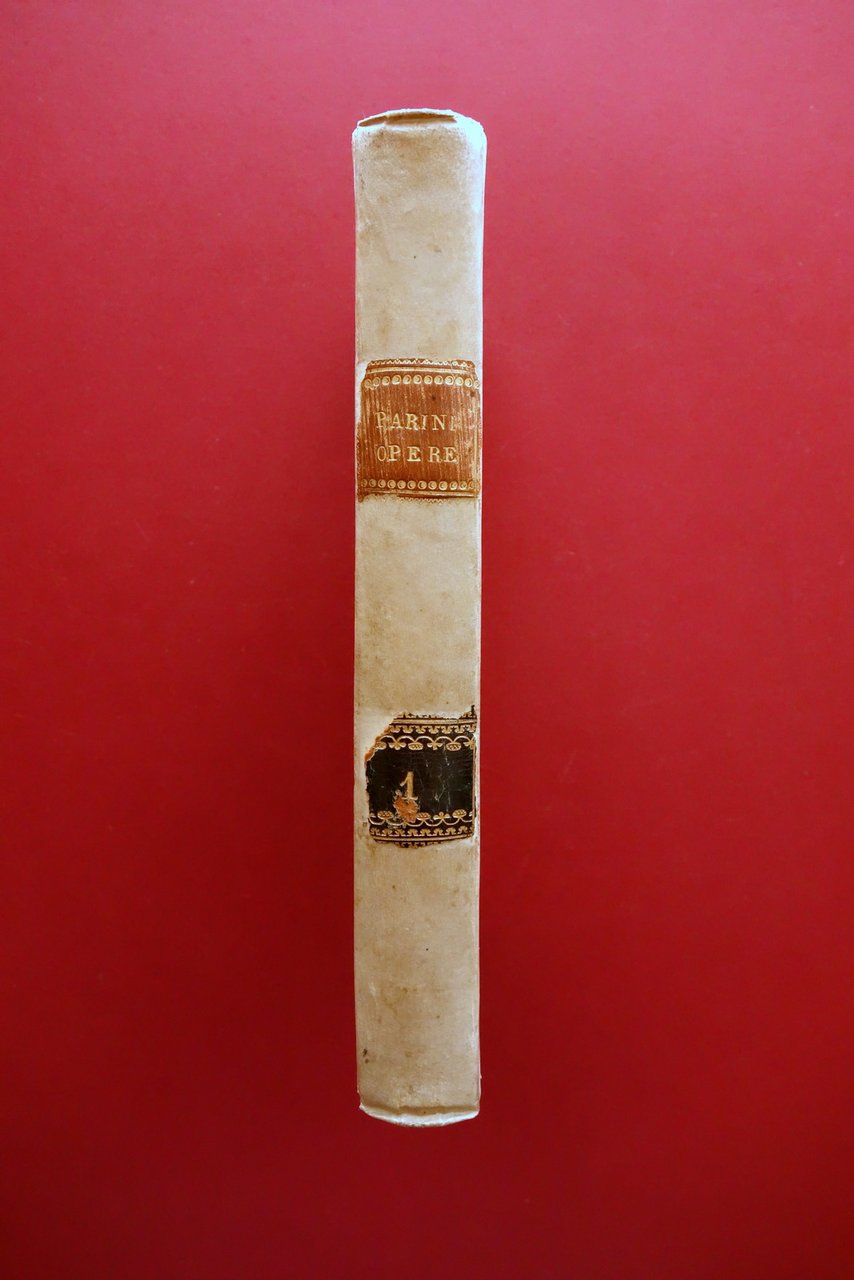 Giuseppe Parini, Opere di Giuseppe Parini pubblicate per cura di Francesco Reina - volume I Soc. Tip. dei Classici Italiani, Milano 1825; cm 23,5x15; pp. XXXVIII-360; all'antiporta ritratto inc. in b/n del Parini, protetto da velina (F. Rosaspina inc.), esemplare marginoso con barbe. Legatura d'epoca in mezza pergamena (dorso e angoli) con titolo in oro entro tassello al dorso, piatti marmorizzati. Volume I. Condizioni di conservazione Buone condizioni con tracce d'uso; coperta con alcune piccole abrasioni ai margini dei piatti e al piatto post., tasselli al dorso con qualche piccola marginale mancanza. Interni buoni con leggero foxing. Volume I, che contiene Il Giorno"; "Odi"; "Canzonette"; "Sonetti"; "Poesie piacevoli"; "Poesie varie"; "Ferammenti" (vedi foto indice). SETT168.L26324 N "