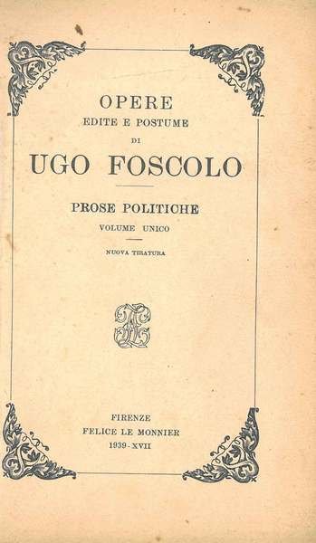 Opere edite e postume di Ugo Foscolo. Prose politiche