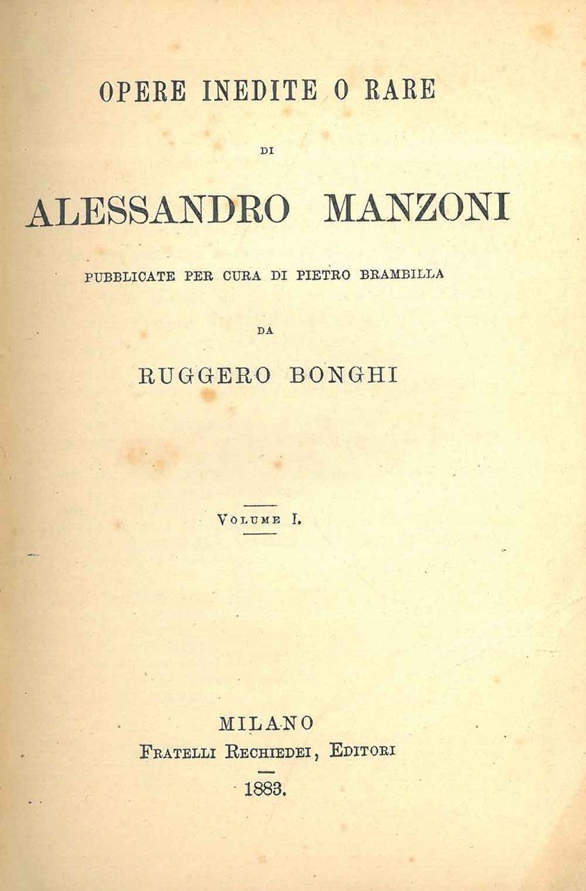Opere inedite o rare di Alessandro Manzoni pubblicate per cura di P. Brambilla VOL. I