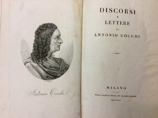 In-8 p. (mm. 210x127), 3 volumi, mz. pergamena coeva (con abrasioni ai piatti), titolo oro su tassello al dorso, pp. XXXI,461,(3); (8),475,(5); XIII,624; con ritratto dell'autore in medaglione, inc. in rame da Gio. Boggi. e 1 tabella fuori testo, più volte ripieg. Vi sono contenuti: "Discorsi e lettere - Dei bagni di Pisa - Consulti medici", con un'appendice d'altri scritti in parte inediti. Noto medico toscano, Antonio Cocchi (1695-1758) fu anche un letterato e membro dell'Accademia della Crusca. Insegnò anatomia a Firenze e fu il primo editore della "Vita" del Cellini (1728). Parecchie delle sue dissertazioni scientifiche e letterarie, non meno acute che eleganti, sono raccolte in "Discorsi toscani". Così Diz. Treccani, III, p. 304. Cfr. anche Gamba,2203: "Supera questa nitida edizione.. le precedenti, e per accuratezza di stampa e per opere la prima volta in essa inserite. Porta in fronte un Elogio dell'A., recitato nella Società botanica fiorentina l'anno 1759" - De Renzi Storia della medicina in Italia,V, menziona numerose sue opere. Con lievi arross. interc. nel testo ma complessivam. buon esemplare.
