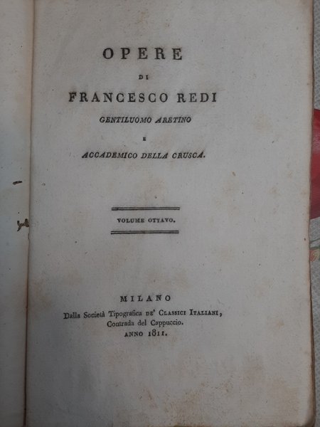 8°, voll. 9, con ritratto dell'A. inciso su rame da Benaglia al primo vol., 6 tavv. f. t. ripiegate ed incise su rame, leg. mz. tela con annesse copp. origg., diversi fori di tarlo ai margini bianchi e qualche macchia. Per errore tipografico nel nono vol. sono riportate due volte le pp. da 401 a 412 mentre mancano le pp. da 417 a 432. Edizione più ampia e più copiosa di ogni altra. (Cfr.: Gamba…)