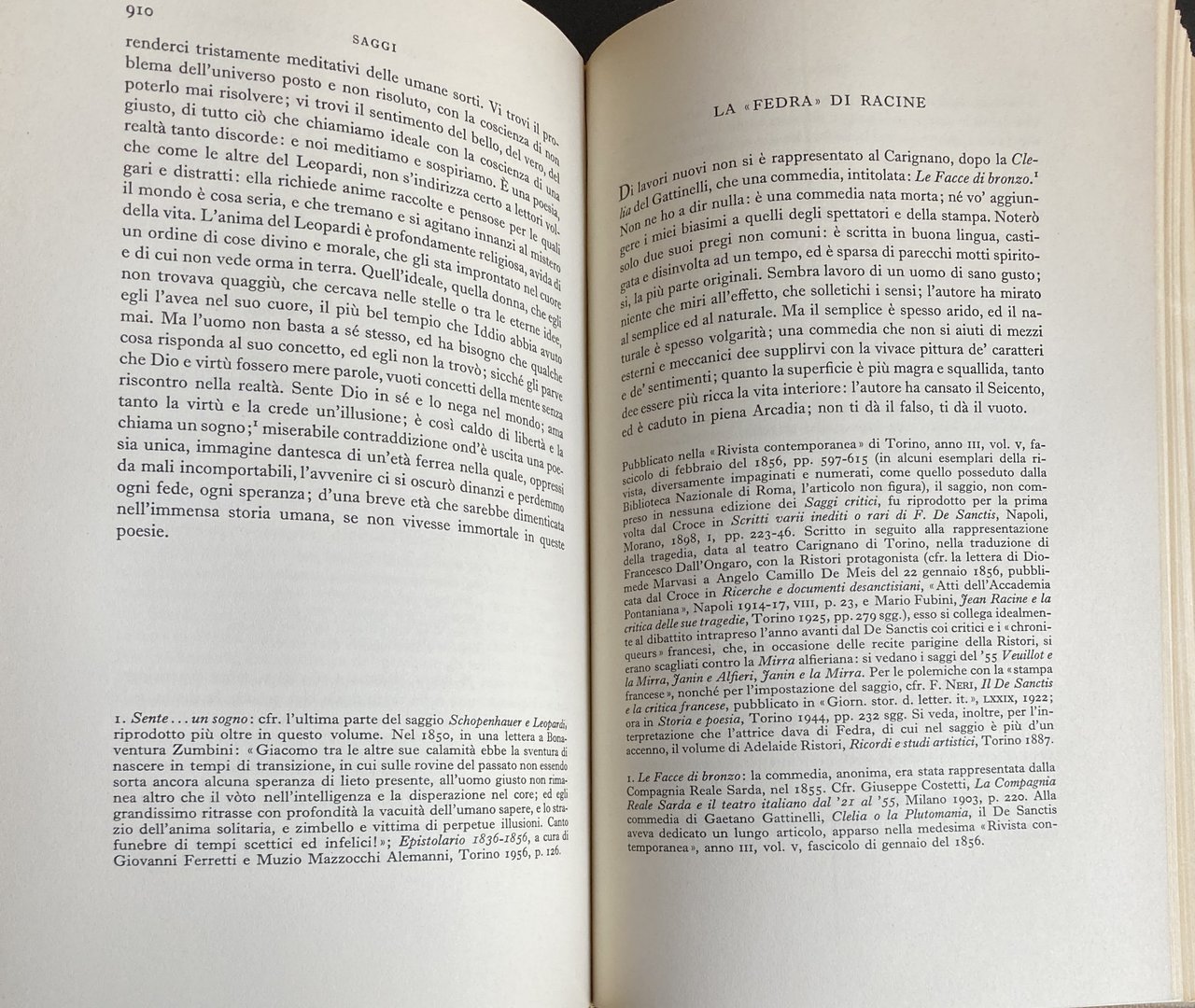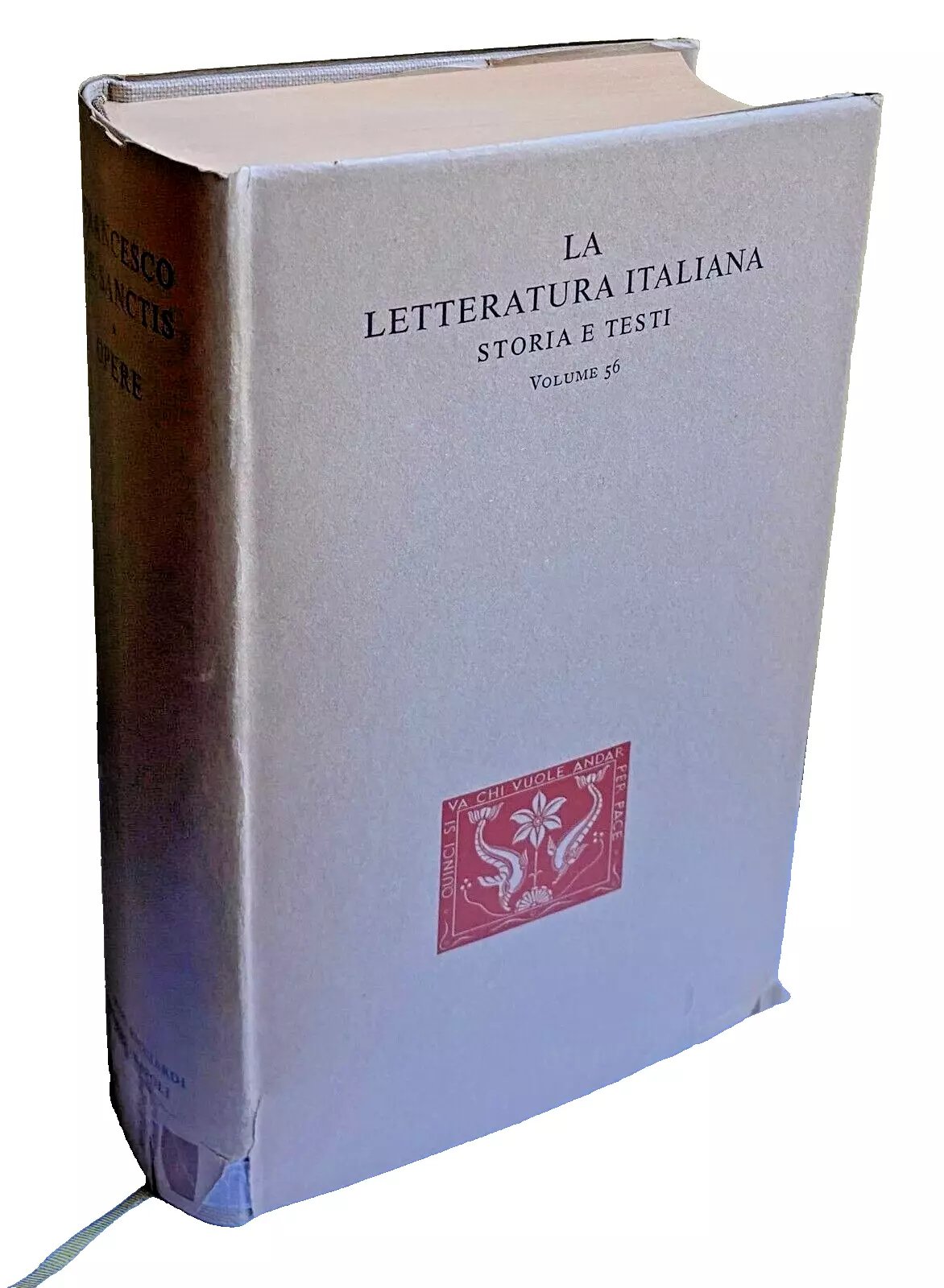 Soggetti: Critica letteraria Biografie Vita Opere complete generali Storiografia letteraria Letteratura italiana comparata Bibliografia Riferimento Antologie Raccolte letterarie Collezionismo Edizioni critiche pregiate Anni Sessanta Studi critici culturali Italianistica Consultazione Storia Caprariis Siciliani Toscani Lirica Dante Alighieri Prosa Misteri Visioni Fantini Trecento Canzoniere Ferrero Baretti Trecentista Stanze Cinquecento Orlando furioso Maccaronea Guzzo Pietro Aretino Solmi Torquato Tasso Marino Nuova scienza Drammatiche Federico Schiller Ebreo Verona Padre Bresciani Alla sua donna Poesia Giacomo Leopardi Fedra Racine Armando Schopenhauer Dialogo Settembrini Epica Lirica Alessandro Manzoni Emile Zola Lezioni Democrazia Scuola cattolico-liberale Secolo XIX Estetica hegeliana Idilli Canzone Angelo Mai Studio Giacomo Leopardi Lezione Corso leopardiano 1876 Viaggio elettorale Ai miei nuovi vecchi elettori Napoli Rocchetta Poetica Roma Lacedonia Fantasmi notturni Principe Sansevero Discorso Bisaccia Calitri Andretta Cavillosa Ultimo giorno Irpinia Avellino Ballottaggio Città Re Michele Giovinezza Marchese Basilio Puoti Solo Collegio militare Caffè Gigante Reminiscenze Agnese Teoria della Lingua Cesarotti Bettinelli Beccaria Scuola napoletana Intellettuali napoletani Corsi privati Grammatica Meridionalismo Giustino Fortunato Pasquale Villari Angelo Camillo De Meis Diomede Marvasi Giacomo Di Chirico Francesco Torraca Luigi La Vista Moti 1848 Risorgimento Unità Benedetto Croce Nunziatella Filosofia della storia Purismo Illuminismo francese d'Alembert Diderot Hélvetius Montesquieu Rousseau Voltaire Cesarotti Gaetano Filangieri Antonio Genovesi Mario Pagano Polemica anti-illuministica Cattolicesimo Liberalismo Liberale Giobertiano Hegel Idealismo tedesco Ottocento Novecento Giuseppe Mazzini Frammento autobiografico Storicismo Marxismo Giuseppe Galasso Delio Cantimori Giudizio negativo Cinquecento Rinascimento Quattrocento Borghesia Popolo Pessimismo Francesco Muscogiuri Giovanni Lanzalone Antonio Fogazzaro Attilio Marinari Regno d'Italia Literaturkritiker Libri rari fuori catalogo Carlo Muscetta Allegorie Amore Artistica Beatrice Canto Cantù Canzone Comico Concetto Concilio Trento Coscienza Decamerone Divina Commedia Donna Dramma Morano Euripide Fantasia Firenze Forma Francese Ideale Idee Idillico Immaginazione Orfeo Latino Lettera Giovanili Libertà Lirica Niccolò Machiavelli Maraviglia Medioevo Metastasio Molière Morale Natura Novelle Paradiso Passioni Pensiero Petrarca Platone Poema Poesia cavalleresca Poetica Politica Principio Purgatorio Inferno Ragione Rappresentazione Rettorica Rime Romanzi Saggio Scrittore Sentimento Società Sonetti Spirito Tragedia Trovatori Virtù Volgare Wille Morra Irpina Ricordi Memorie Francesco Flora Giovanni Ferretti Luigi Russo Daniele Mattalia Elio Gioanola Gennaro Savarese Supplemento Gaspary Gaetani Tamburini Mandalari Herrig Scritti Patrioti Cultura Aneddoti Marc Monnier Borgese Rassegna Assommoir Drammaturgia Ammazzatoio Literary criticism Biographies Life Complete general works Literary historiography Comparative Italian literature Bibliography Reference Anthologies Literary collections Collecting Precious critical editions Sixties Critical cultural studies Consultation History Sicilians Tuscans Lyric Prose Mysteries Visions Fourteenth century Songbook Stanzas Sixteenth New science Dramatics Jews To his woman Poetry Phaedra Dialogue Epic Lyric Lessons Democracy Catholic-liberal Nineteenth Hegelian aesthetics Idylls Song Study Lesson Leopardian course Electoral journey To my new old voters Naples Poetics Rome Prince Speech Ballot City Youth Marquis Military college Café Reminiscences Theory Language Neapolitan school Intellectuals Private courses Grammar Southernism Movements Unity Philosophy of history Purism French Enlightenment Anti-Enlightenment polemic Catholicism Liberalism German idealism Twentieth Autobiographical fragment Historicism Marxism Negative judgment Sixteenth century Renaissance Fifteenth Bourgeoisie People Pessimism Kingdom Italy Rare books out of print Collectibles Allegories Love Artistic Song Concept Council Consciousness Divine Comedy Woman Drama Euripides Fantasy Florence French Ideas Idyllic Imagination Orpheus Latin Letter Freedom Lyric Middle Ages Nature Short stories Paradise Passions Thought Petrarch Plato Poem Chivalric poetry Poetics Politics Principle Purgatory Hell Reason Representation Rhetoric Rhymes Novels Essay Science Writer Feeling Society Sonnets Spirit Tragedy Troubadours Virtue Vulgar Memories Memoirs Supplement Writings Patriots Culture Anecdotes Review Assommoir Dramaturgy Slaughterhouse