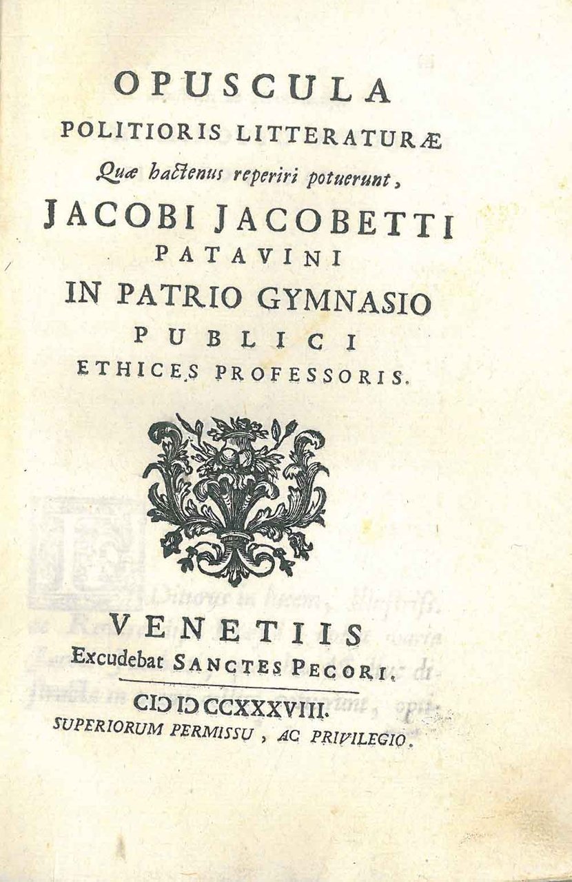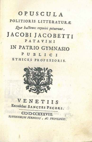 Opuscula politioris litteraturae quae hactenus reperiri potuerunt, Jacobi Jacobetti patavini in patrio gymnasio publici ethices professoris