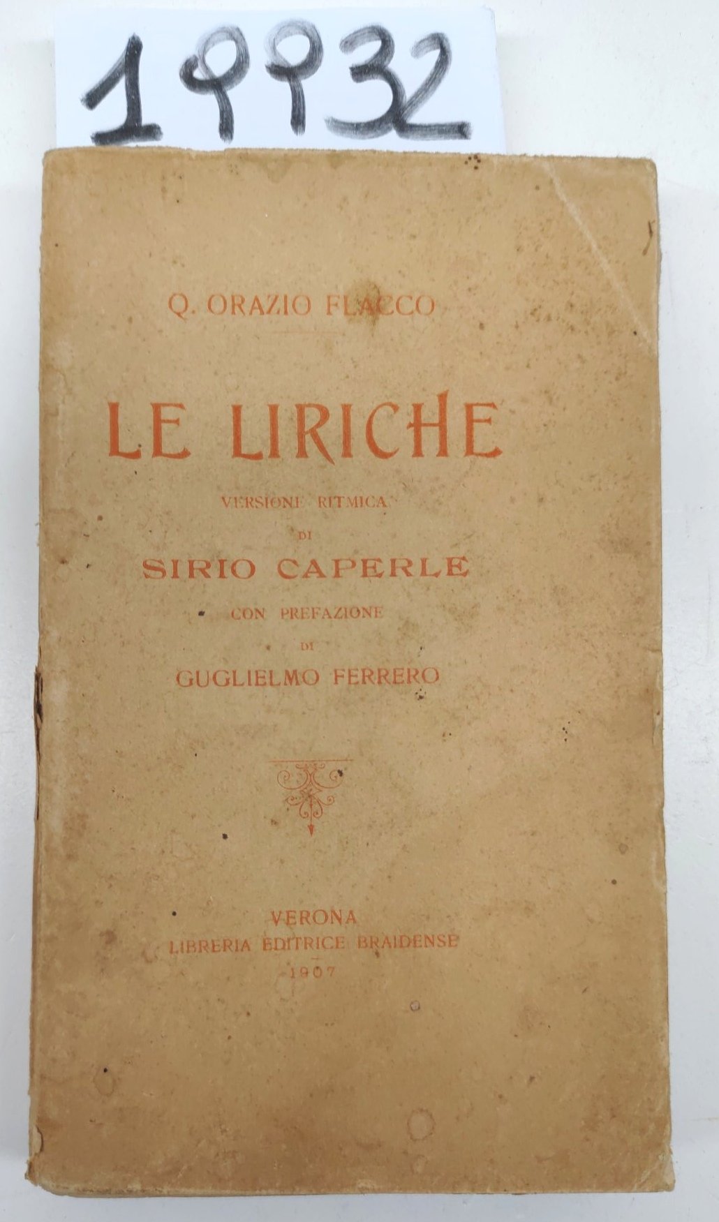 Orazio Flacco Le liriche versione ritmica di Sirio Caperle con prefazione di Guglielmo Ferrero Braidense 1907