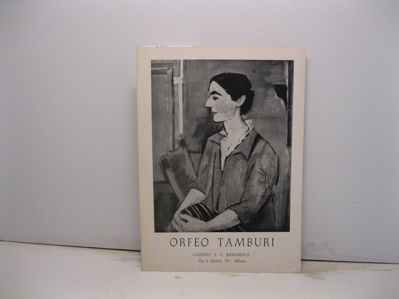 Pieghevole di 6 facciate (cm 15,3 x 21 ca) invito alla mostra delle opere di Orfeo Tamburi alla galleria Barbaroux di Milano. Ill. in b/n al p. ant. Testo di presentazione in lingua francese tratto da Marcel Sauvage, Orfeo Tamburi, Paris, Denoel. Elenco delle opere in mostra.