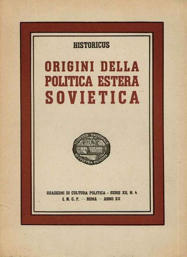 Istituto nazionale di cultura fascista, Roma, 1942. brossura. Condizione libro: molto allentato . 8�, 64 pp. - Dal Trattato di Brest-Litovsk con la Germania alla guerra russo-finlandese del 1940 e allo schieramento contro l'Asse. - Historicus fu lo pseudonimo con il quale Amedeo Tosti, combattente della prima guerra mondiale, scrittore di cose militari molto apprezzato negli anni Trenta, scrisse saggi di carattere storico-politico.