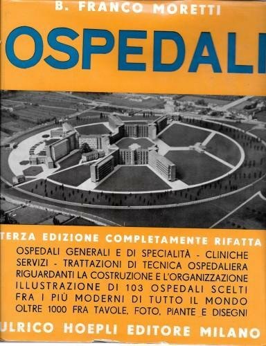 in 4°, pp. XVI, 575, p/tela edit. beige con tit. in azzurro e sovracop. ill.; 3^ ediz. completamente rifatta con oltre 1000 foto, piante, tavole e disegni di ospedali generali e di specialità, trattazioni di tecnica ospedaliera riguardanti la costruzione e l'organizzazione interna, illustrazione di 103 ospedali scelti fra i più moderni del mondo. Qc. strappetto alla sovracop. 044/23