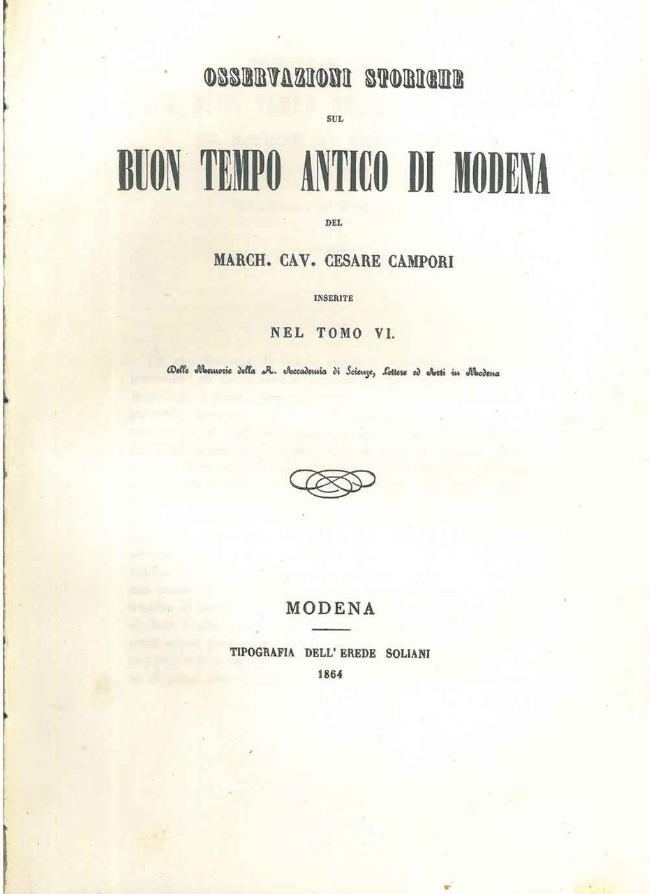 Osservazioni storiche sul buon tempo antico di Modena Estratto da Memorie della R. Accademia di Scienze .