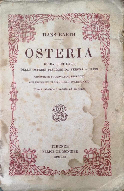 OSTERIA. - Guida spirituale delle osterie italiane da Verona a Capri.