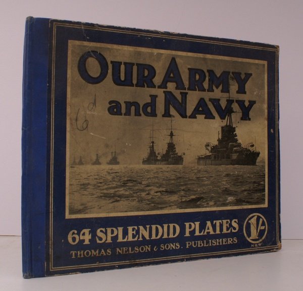 Oblong quarto, First Edition, with 64 fine large plates, one or two plates with short closed tears neatly repaired; pictorial boards, blue cloth back, covers mildly age-worn and soiled as usual, neatly recased, a very good, bright copy. Well-chosen selection of plates emphasising both the traditional and the innovative elements of each service in the context of the Great War. SCARCE.