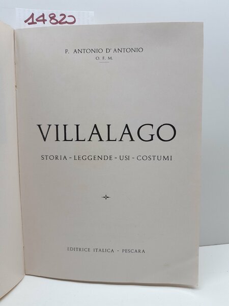 P A. D'Antonio Villalago storia leggende usi consumi Ed. Italica 1976 autografato