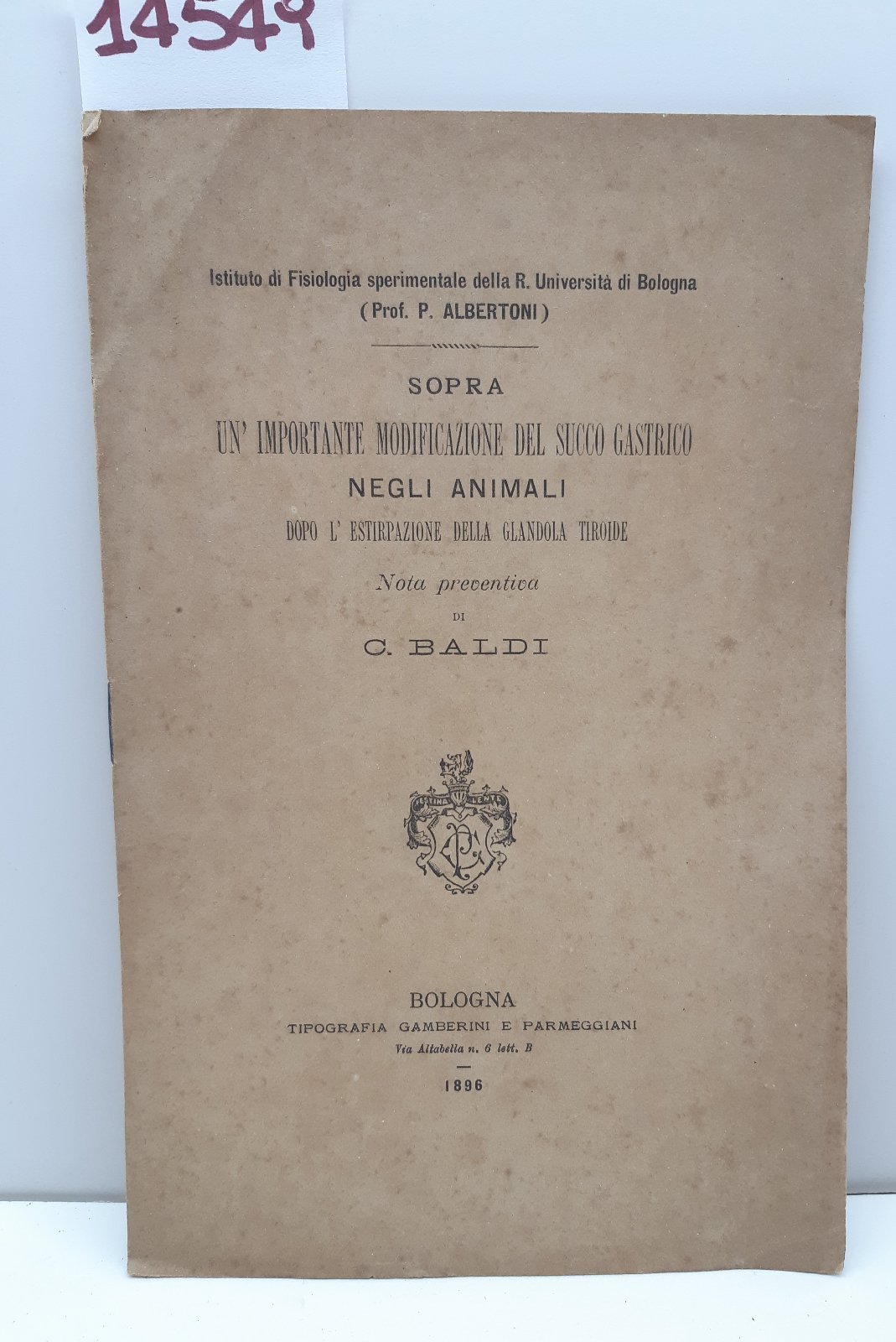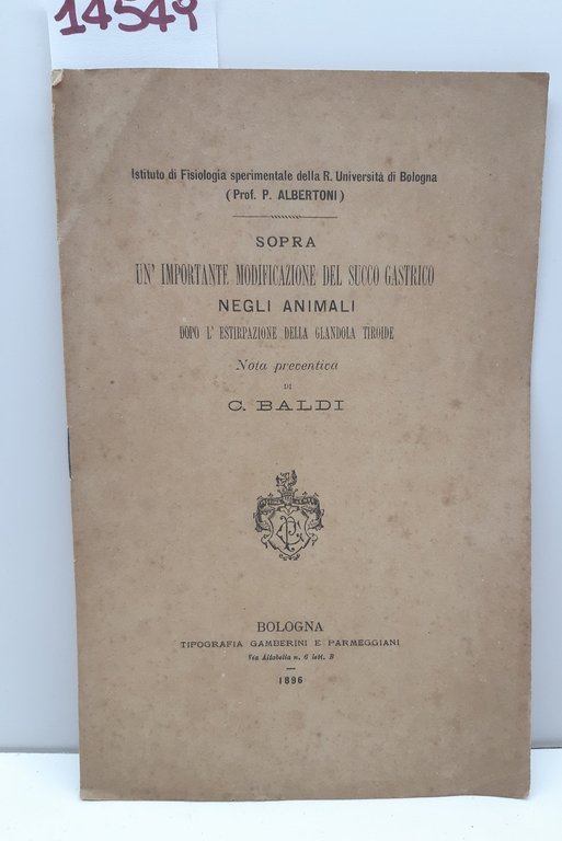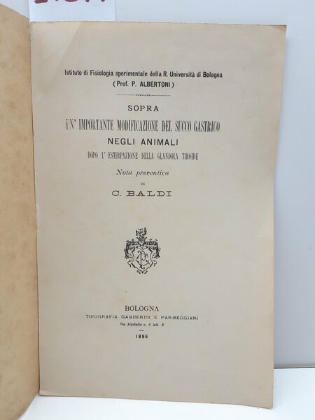 P Albertoni Modificazione del succo gastrico negli animali dopo l'estirpazione tiroide Parmeggiani 1896