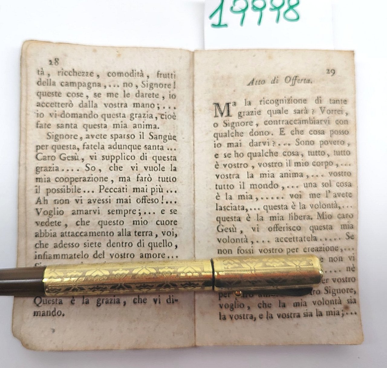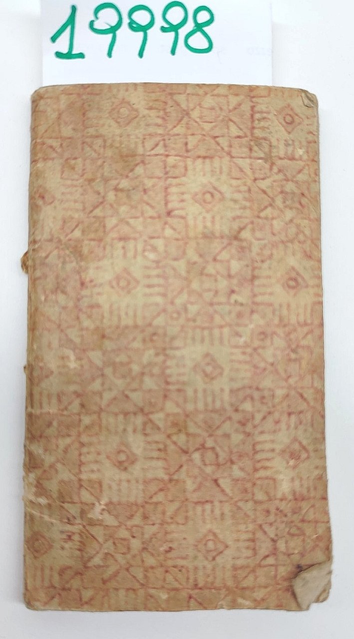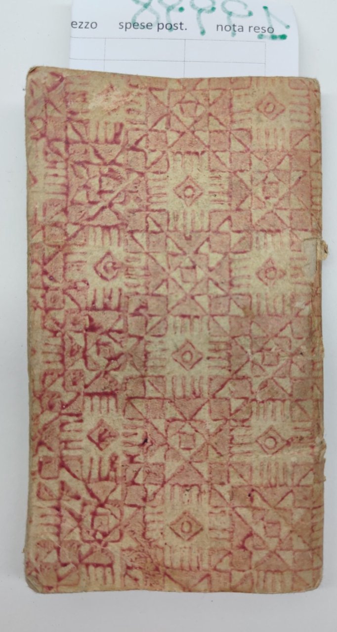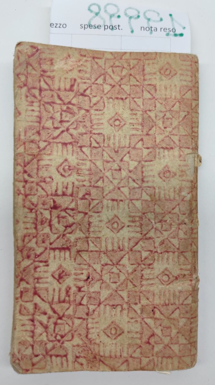 legatura morbida in cartonato coevo con segni di usura bruniture e abrasioni al dorso, tagli bruniti con angoli arricciati, pagine interne leggermente brunite con fioriture che non vanno a disturbare la lettura, al frontespizio fioriture diffuse ed incisione, sporcizie al margine interno, pagine interne leggermente brunite numero pagine 60 dimensioni cm 11,7 * 6,5
