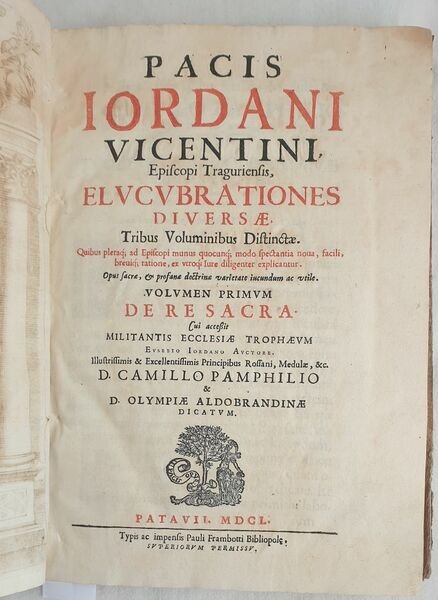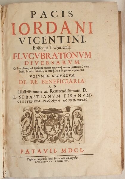 PACIS IORDANI VICENTINI EPISCOPI TRAGURIENSIS ELUCUBRATIONES DIVERSAE TRIBUS VOLUMINIBUS DISTINCTAE DE RE SACRA DE RE BENEFICIARIA DE RE IUDICIALI
