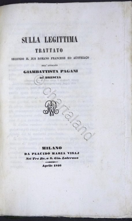 Pagani - Sulla legittima: trattato secondo jus romano francese e austriaco 1846