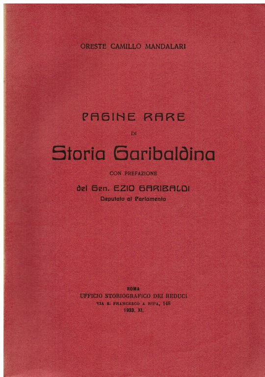 Pagine rare di storia garibaldina con prefazione del gen. Ezio Garibaldi deputato al Parlamento