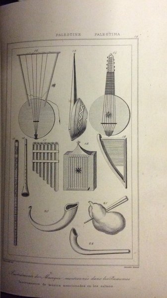 In-8 p. (mm. 208x133), tela mod., titolo oro al dorso, pp. (4),704, ben illustrato fuori testo - come da Indice - da 71 tavole xilografate che raffigurano monumenti, vedute, usi e costumi del popolo palestinese (incluse 3 carte geografiche del territorio in diversi periodi).Il volume fa parte della Collana L'Univers, ou histoire et description de tous les peuples, de leurs religions, moeurs, costumes, etc. Solo 13 tavole con alone margin., altrimenti esemplare ben conservato.