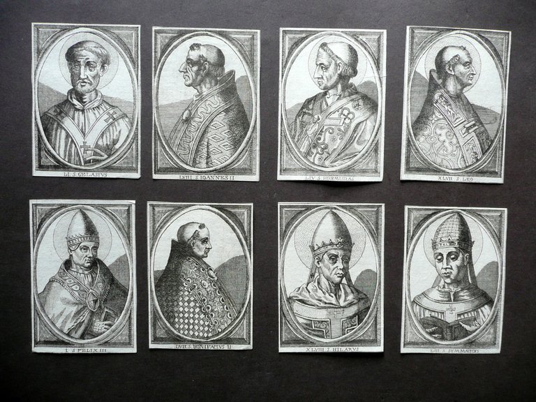Papi Santi Otto Ritratti Incisi Fine '600 Religione Retro Bianco
