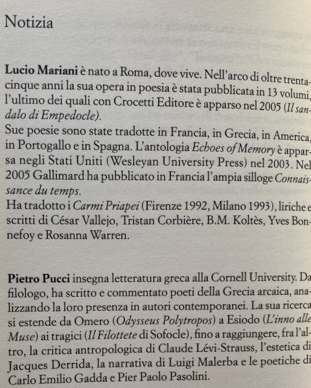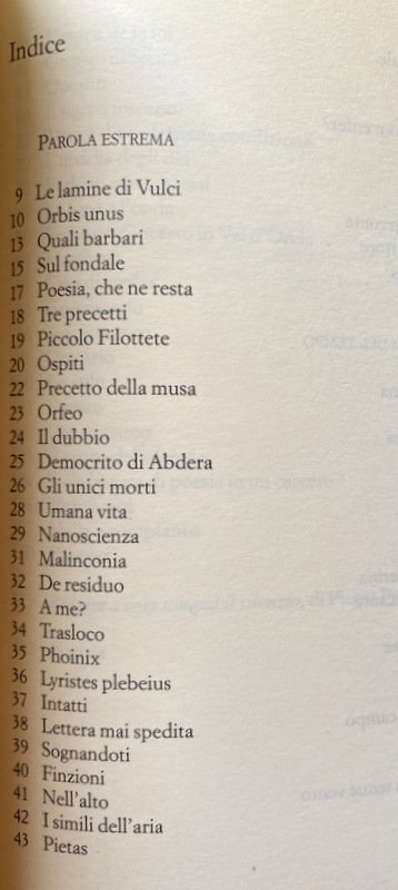 Soggetti: Poesia, Raccolte poetiche, Poesie, Letteratura contemporanea, Grecia, Carmi, Liriche, Versi, Collezioni, Collezionismo, Opere generali, Critica letteraria, Analisi, Testi, Scritti poetici, Silenzio, Scrittura, Poetica, Crisi, Verità, Parola, Muse, Mitologia greca, Apollo, Dèi, Mousegetes, Metonimie, Esiodo, Erudizione, Mistero, Salvezza, Mitilene, Samo, Viaggio, Sillogi antologiche, Gomitoli del tempo, Libri rari Vintage fuori catalogo, Poeti italiani contemporanei, Postmodernismo, Lirica, Opere letterarie, Tensione, Vissuto, Contemplazione, Natura, Luoghi, Mito, Donne, Ironia, Sarcasmo, Squarcio, Pathos, Ospitalità, Ospiti, Alienazione, Solitudine, Dioniso, Violenza, Abisso, Zattere, Suggestioni, Ossimori, Carteggio, Chioma, Divino, Umano, Nostalgia, Spirito apollineo, Verità, Poetry, Poetry collections, Poems, Contemporary literature, Greece, Poems, Lyrics, Verses, Collections, Collectingism, General works, Literary criticism, Analysis, Texts, Poetic writings, Silence, Writing, Poetics, Crisis, Truth, Word, Muses, Mythology Greek, Gods, Metonymy, Hesiod, Erudition, Mystery, Salvation, Mytilene, Samos, Journey, Anthological syllogi, Balls of time, Rare books out of print, Contemporary Italian poets, Lyrics, Literary works, Tension, Lived, Contemplation, Nature, Places, Myth, Women, Irony, Gash, Hospitality, Guests, Alienation, Loneliness, Dionysus, Violence, Abyss, Rafts, Suggestions, Oxymorons, Correspondence, Hair, Divine, Human, Apollonian spirit, Truth