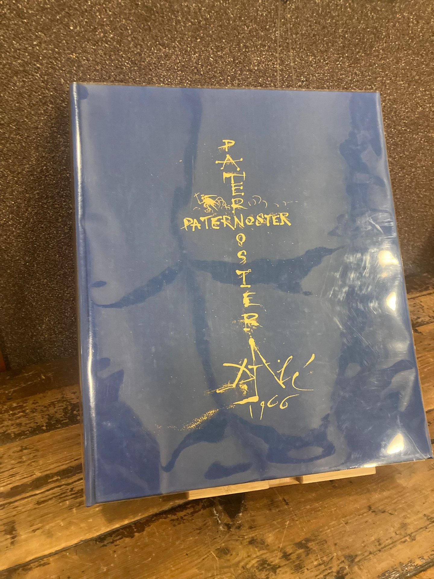In-folio (410x340mm), ff. 26 nn., legatura editoriale in raso azzurro con titolo stilizzato impresso in oro a forma di croce al piatto. Titolo in oro al dorso. Sovraccoperta trasparente in acetato. 9 tavv. a colori f.t. protette da carta giapponese e riproducenti opere espressamente realizzate da Salvador Dalì che raffigurano i vari passi della preghiera del Padre Nostro. Il Pater Noster è proposto nelle lingue latina, italiana, inglese, francese, tedesca, russa, giapponese, spagnola, portoghese, cinese. In chiusura sono riprodotte le pagine di un messale del secolo XIV con il Pater Noster in canto gregoriano. Condizioni perfette. In barbe. Prima edizione del 'Pater Noster' illustrato da Dalì.