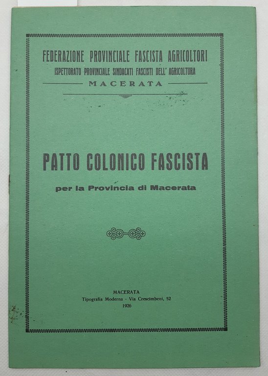Patto colonico fascista per la provincia di Macerata agricoltori 1926 -3162