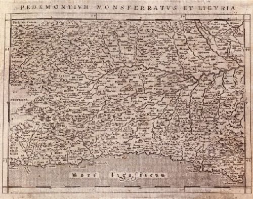 >Incisione in rame, mm. 140 x 180 e margini. Titolo lungo la parte superiore del rame. Carta geografica contenuta in: C. Ptolemaeus, Geographiae universae... inserita anche nelle successive riedizioni della Geografia di Tolomeo pubblicata dal Magini. Incisione in rame, in ottimo stato di conservazione. Dettagliata carta dei territori che si estendono da Genova a Milano, dalla Savoia alla Provenza. Bell'esempalare d'insolito formato per le carte dell'epoca L. e G. Aliprandi, Le grandi Alpi ( 2005), p. 91 (v. 1) ; F. Barrera, Il Piemonte nella cartografia del Cinquecento e Seicento, n. 80.