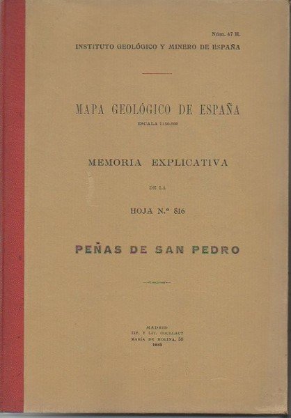 PEÑAS DE SAN PEDRO. MAPA GEOLOGICO DE ESPAÑA. MEMORIA EXPLICATIVA DE LA HOJA N. 816.