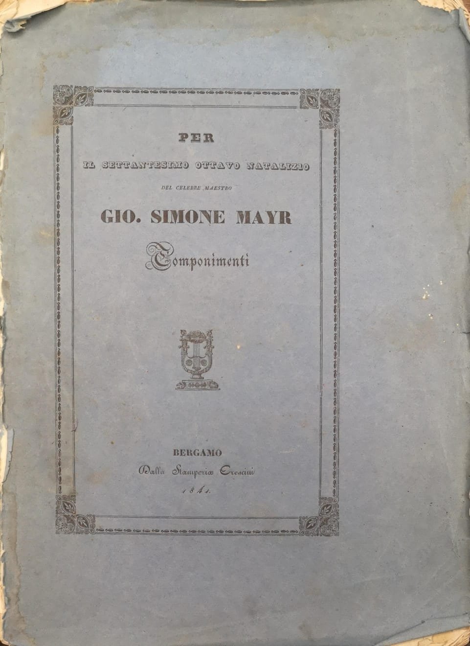 PER IL SETTANTESIMO OTTAVO NATALIZIO DEL CELEBRE MAESTRO GIOVANNI SIMONE MAYR. COMPONIMENTI.