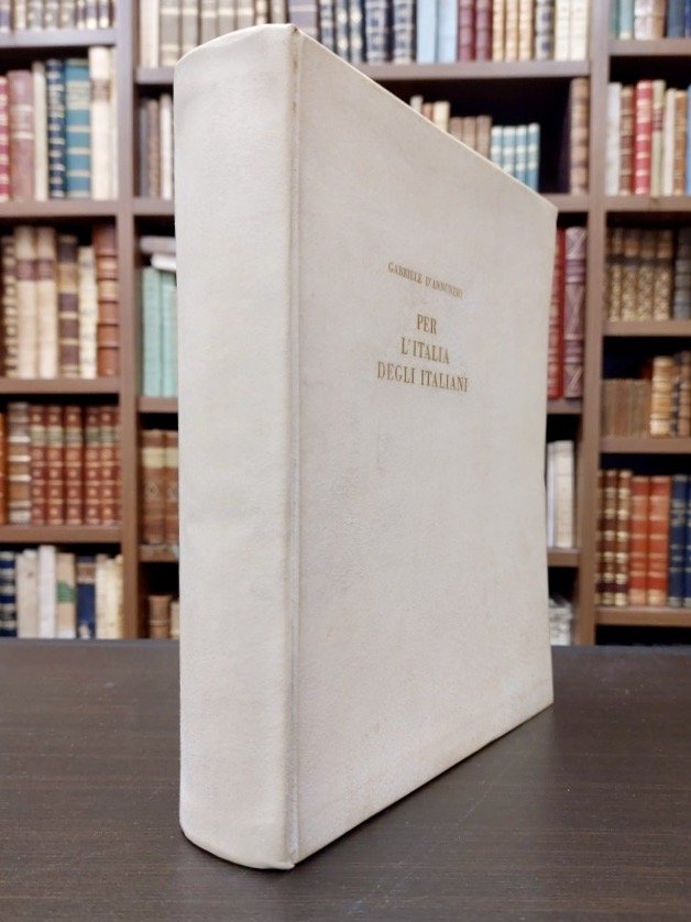 <span style="font-style: normal;">In-8° (cm. 24,6), legatura editoriale in piena pergamena con titolo in oro al piatto anteriore, taglio superiore dorato; pp. XII [4] 427 [1] in barbe, in ottimo stato. </span><span style="font-style: normal;">Prima edizione, nella tiratura detta </span><i>straordinaria</i>, di soli 100 esemplari impressi su carta speciale appositamente fatta dalle Cartiere Binda, numerati a macchina con numeri romani, il nostro è il n. XVII. «Discorso pronunciato a Milano dalla ringhiera del Palazzo Marino la notte del 3 agosto 1922 con aggiunti il comento inedito, il messaggio del convalescente agli uomini di pena, tre preghiere dinanzi agli altari disfatti e sette documenti d'amore». Cfr. De Medici 114; Guabello 325. Ottimo esemplare. (NX)
