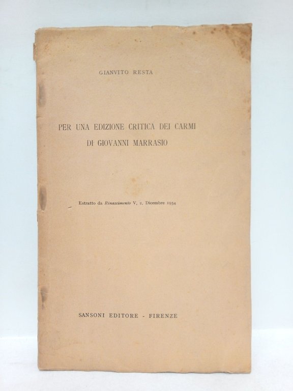 Firenze: Sansoni Ed., 1954.- P. 261-289 (en total 28 páginas); 4º (24,3 x 15,1 cm); Rústica Ed.- (Estratto da "Rinascimento". Vol. 2. Dicembre 1954).* La cubierta anterior algo ajada y ligeramente manchada. Por lo demás muy bien. EDAD MEDIA EUROPEA