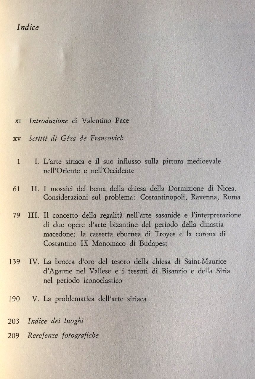 Soggetti: Critica, Movimenti, stili artistici, Arte bizantina medievale, Bisanzio, Influssi, Oriente, Orientalismo, Occidente, Ravenna, Roma, Mosaici, Miniature, Relazioni internazionali, Cultura, Sasanidi, Est, Asia, Impero romano, Islam, Storia antica, Archeologia, Siria, Nicea, Costantinopoli, Pittura, Mosaici, Arte miniatoria, Troyes, Budapest, Saint-Maurice, Bema, Regalità, Macedonia, Cassetta eburnea, Corona, Costantino IX, Monomonaco, Brocca d'oro, Reperti archeologici, Tesori, Agaune, Tessuti, Iconoclastia, Fotografie, Bibliografia, Arte sasanide, achemenide, Ravennate, Palatium, Teodorico, Frigia, Scultura, Medievistica, Studi culturali, Collezionismo, Rarità, Persiano, Saggistica, Libri rari Vintage fuori catalogo, Referenze, Siriaca, iconoclastia, Illustrazioni, Oreficeria, Antichità, Santuari , Tombe rupestri, Licia, Egitto, Medio oriente, Criticism, Movements, artistic styles, Medieval Byzantine art, Byzantium, Influences, East, Orientalism, West, Ravenna, Rome, Mosaics, Miniatures, International relations, Culture, Sasanians, East, Roman Empire, Ancient history, Archaeology, Syria, Nicaea, Constantinople, Painting, Illumination, Kingship, Macedonia, Ivory Box, Crown, Constantine IX, Monomonk, Gold Pitcher, Archaeological Finds, Treasures, Textiles, Iconoclasm, Photographs, Bibliography, Sasanian, Achaemenid, Theodoric, Phrygia, Sculpture, Medieval studies, Cultural studies, Collectables, Rarities, Persian, Non-fiction, Out-of-print rare books, References, Syriac, Iconoclasm, Illustrations, Jewellery, Antiquities, Sanctuaries, Rock tombs, Lycia, Egypt, Middle East